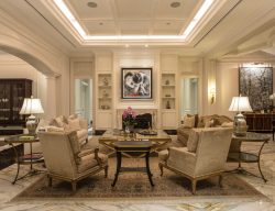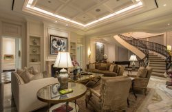 The design strikes a balance between formality and comfort. Symmetry in the seating arrangement emphasizes structure and order, while soft fabrics and thoughtful decorative details ensure the space feels inviting and livable. This home perfectly merges classical grandeur with understated luxury.